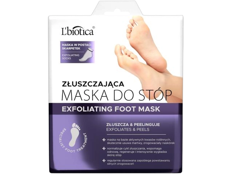 Skarpetki złuszczające L’Biotica to nowoczesne rozwiązanie dla każdego, kto pragnie przeprowadzić profesjonalny zabieg pielęgnacyjny stóp we własnym domu. Ten kosmetyk w formie nasączonych skarpetek został opracowany specjalnie dla osób borykających się z nadmiernym rogowaceniem, odciskami, zgrubieniami oraz przesuszoną skórą stóp. Formuła wzbogacona roślinnymi kwasami oraz mocznikiem głęboko regeneruje i wygładza naskórek, przywracając stopom jedwabistą miękkość i gładkość.