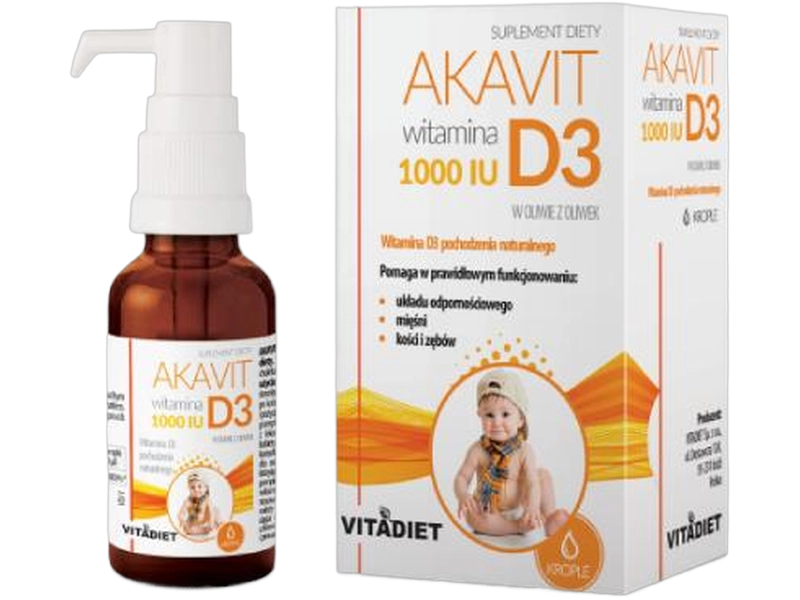 Linia Akavit zawiera preparaty z witaminą D3 w dawkach od 1000 do 4000 jednostek międzynarodowych, witaminę C oraz połączenia witaminy D3 z K2. Seria Dervit skupia się na kondycji włosów, skóry i paznokci – w jej skład wchodzą produkty z biotyną, takie jak Dervit Forte, a także Dervit Beauty i Dervit Kolagen. Oferta probiotyków obejmuje SaccharoBiotic 250 zawierający drożdże Saccharomyces boulardii oraz Flora Diet z bakteriami probiotycznymi. Dodatkowo dostępne są suplementy specjalistyczne: Helicofood + żurawina dla układu pokarmowego, HepaDiet Complex wspierający wątrobę, Prostawen skierowany do mężczyzn oraz Omega 3 EPA DHA z kwasami tłuszczowymi.