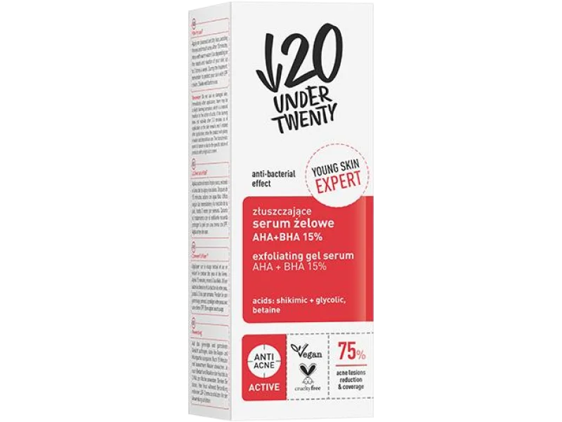 - Kwas glikolowy – należy do grupy kwasów AHA, delikatnie złuszcza i wygładza powierzchnię skóry.